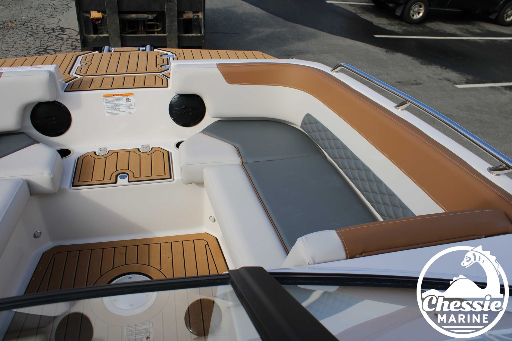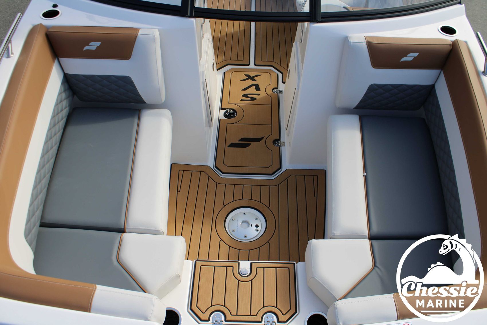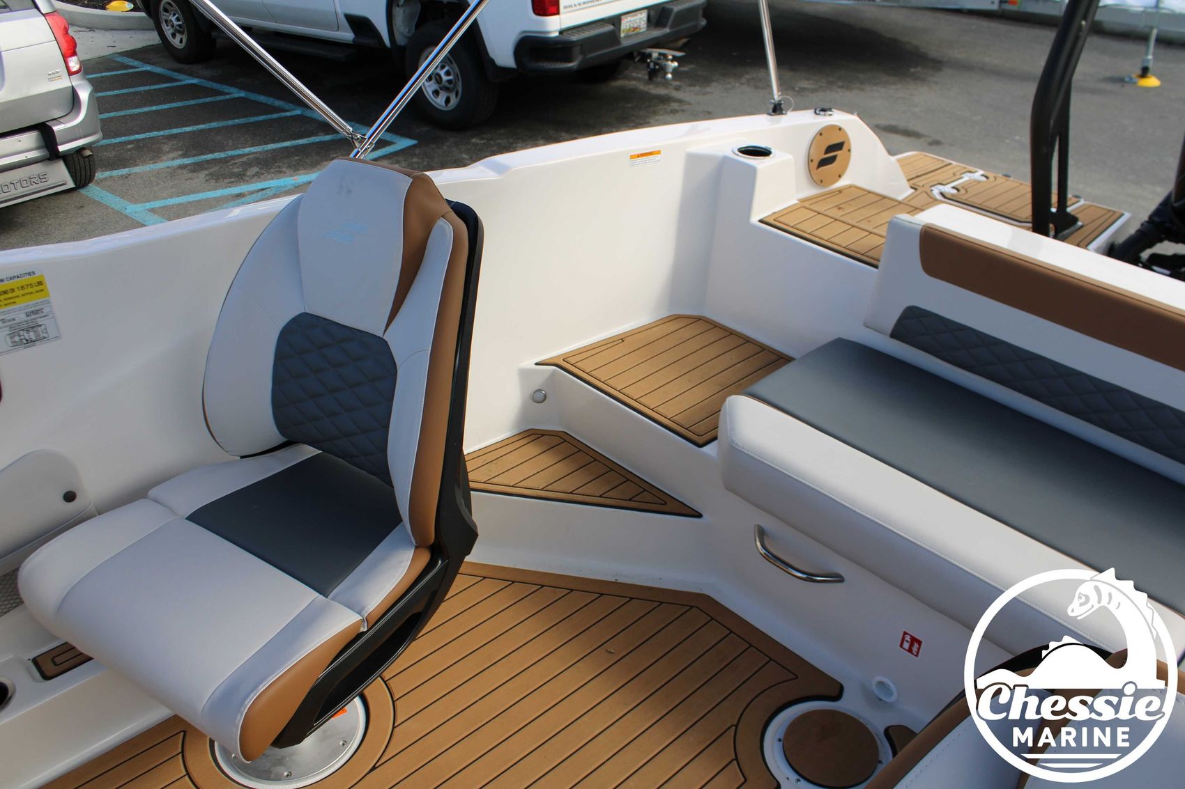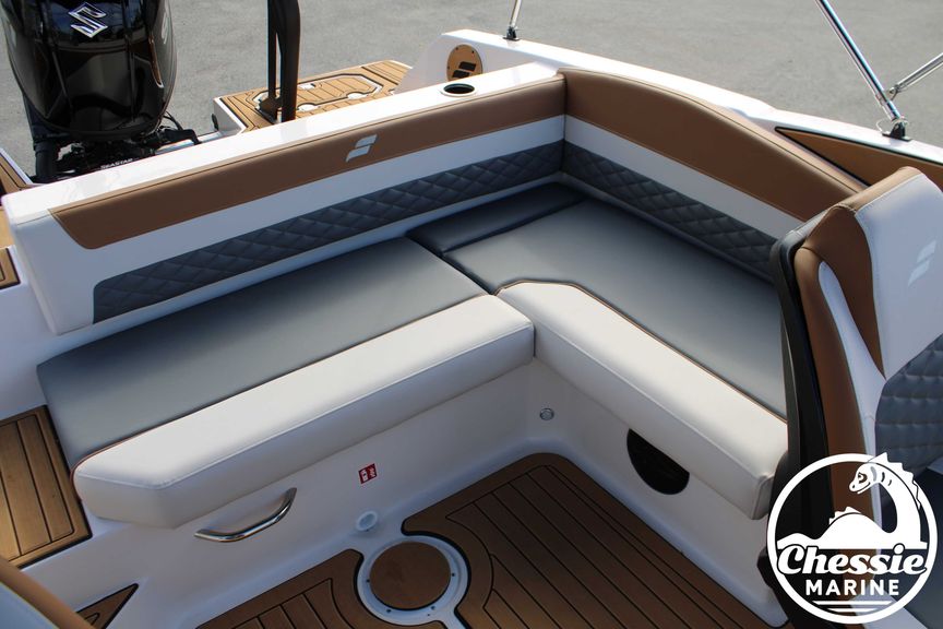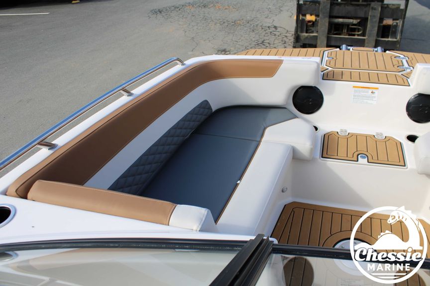 Executive Package Includes: Deluxe Furniture Package, Solid Color Hull, Black Logo and Badge Graphics, Black Rub Rail w/ Stainless Steel Insert