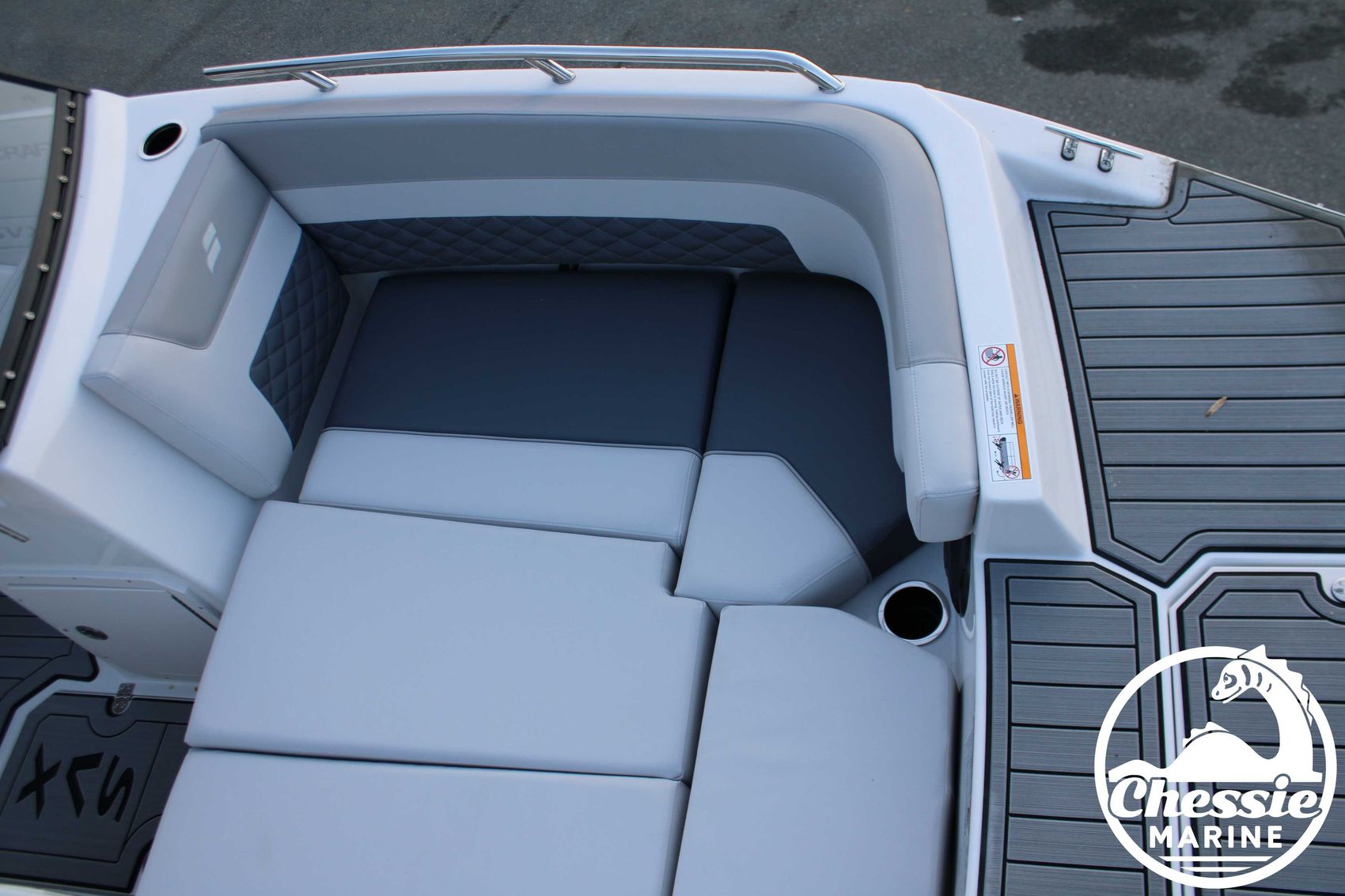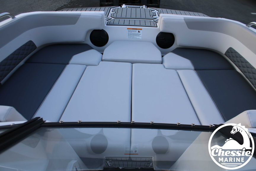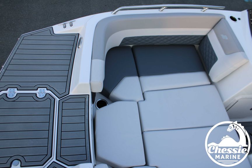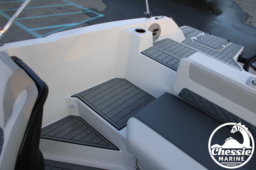 Executive Package Includes: Deluxe Furniture Package, Solid Color Hull, Black Logo and Badge Graphics, Black Rub Rail w/ Stainless Steel Insert