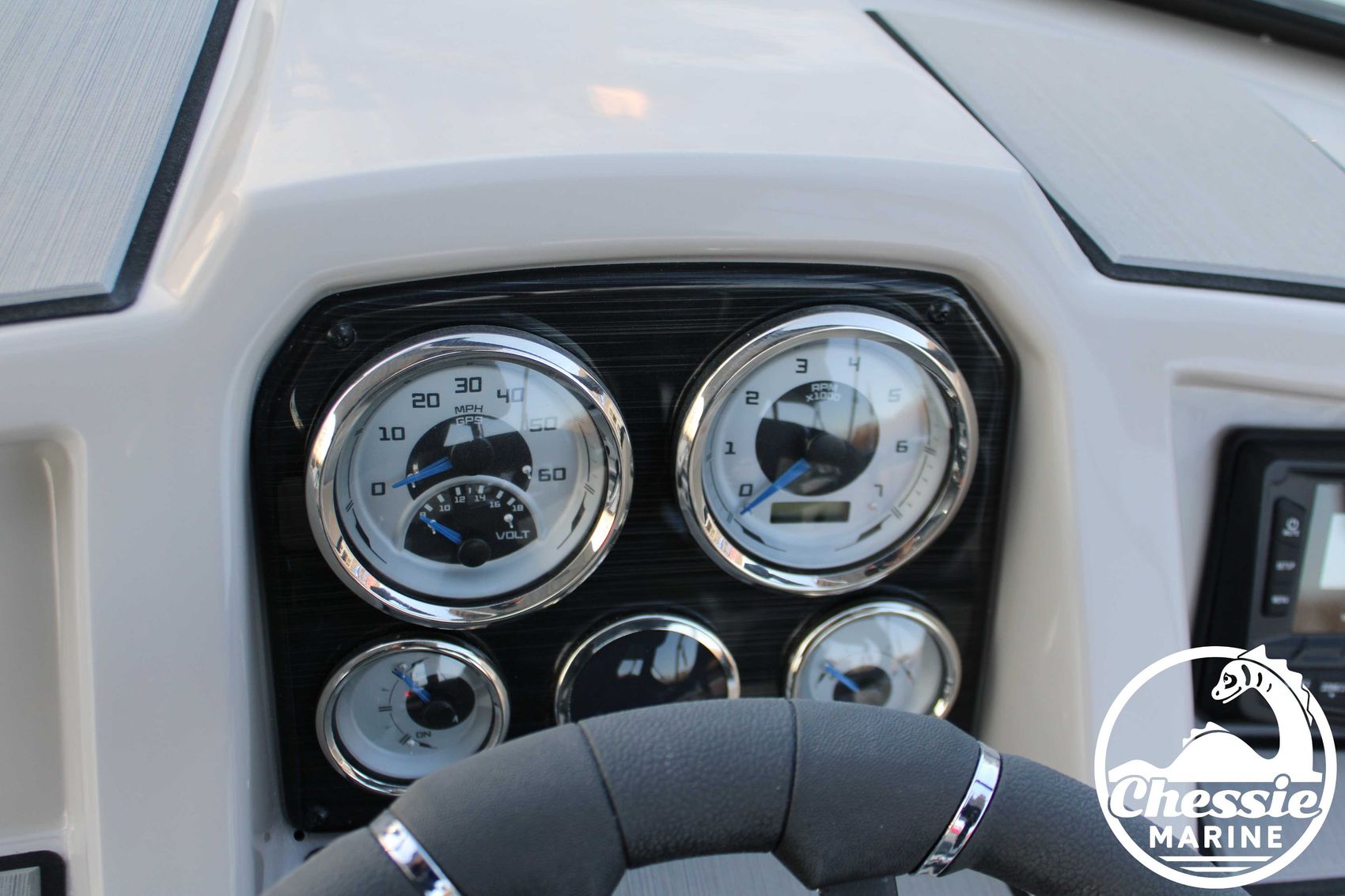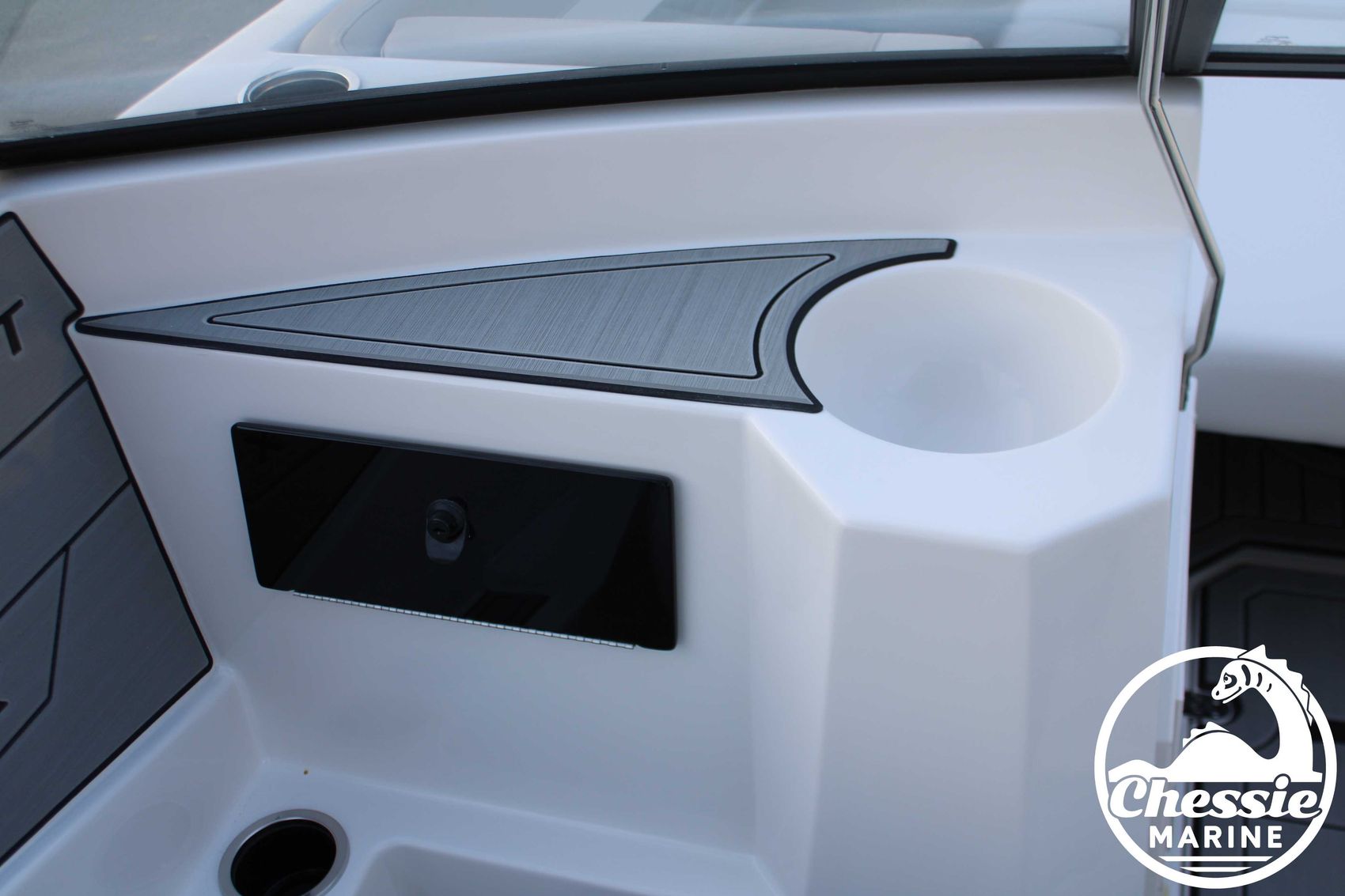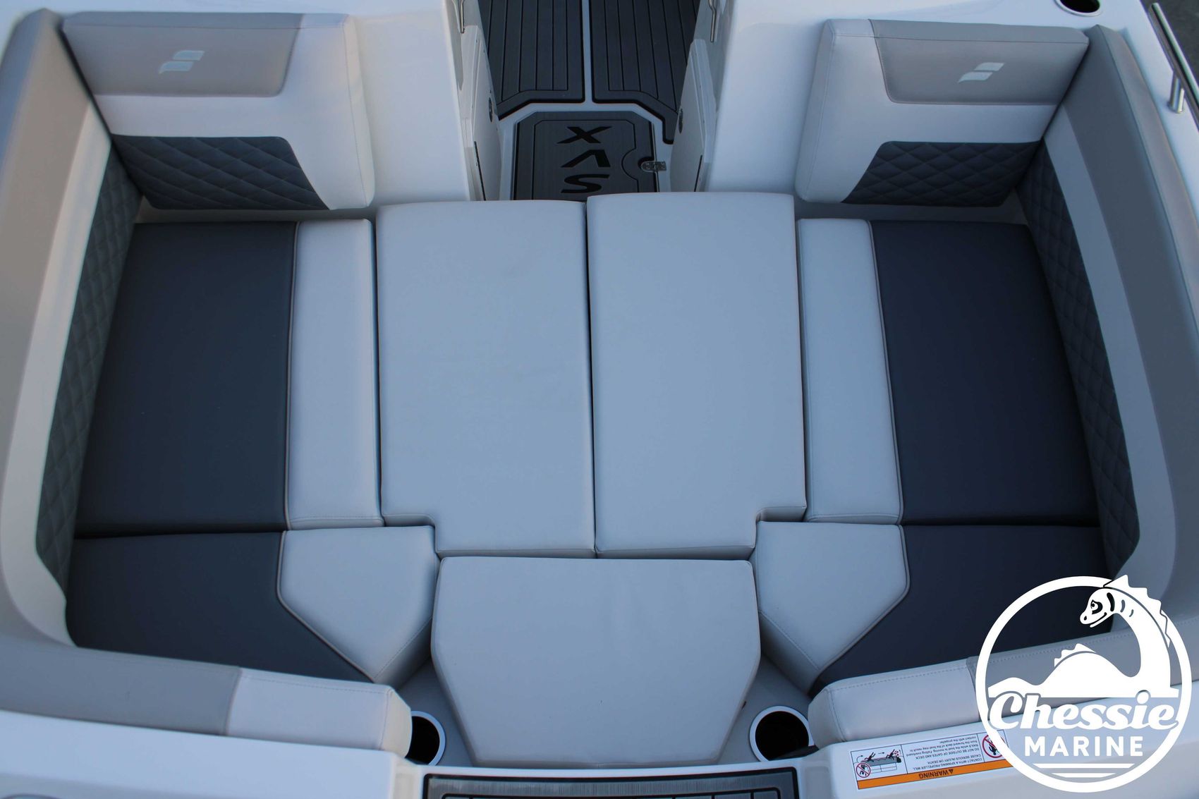 Executive Package Includes: Deluxe Furniture Package, Solid Color Hull, Black Logo and Badge Graphics, Black Rub Rail w/ Stainless Steel Insert